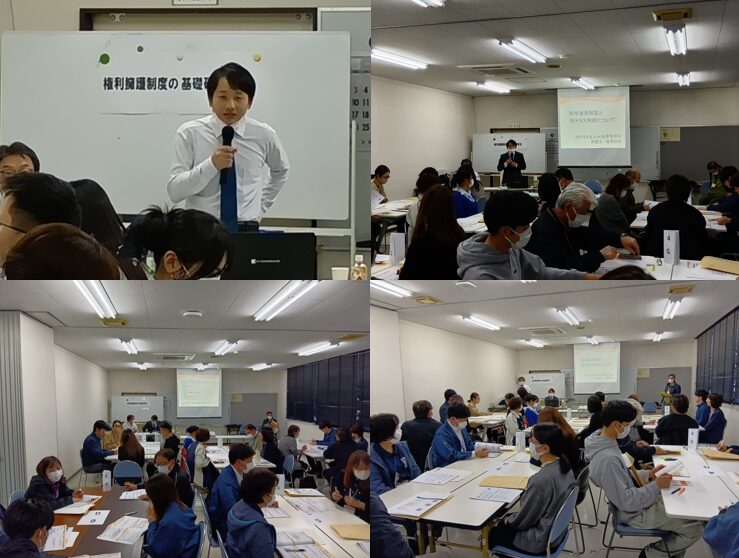 講師には、法テラスの塩澤裕樹弁護士と、私たち行橋・京都成年後見センターが登壇しました。